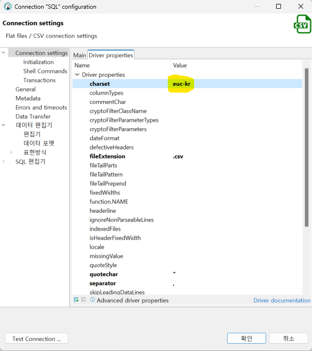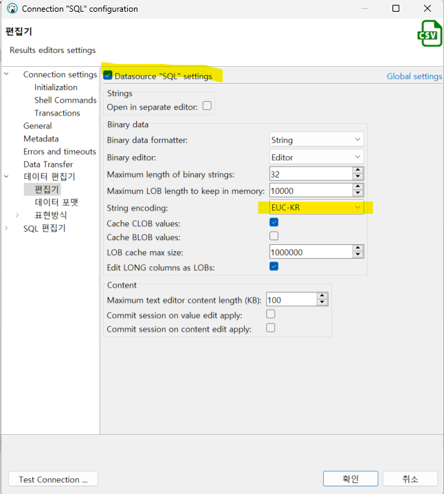 데이터 편집기 - 편집기 - 맨 위 Datasaurce "SQL" settings 체크
