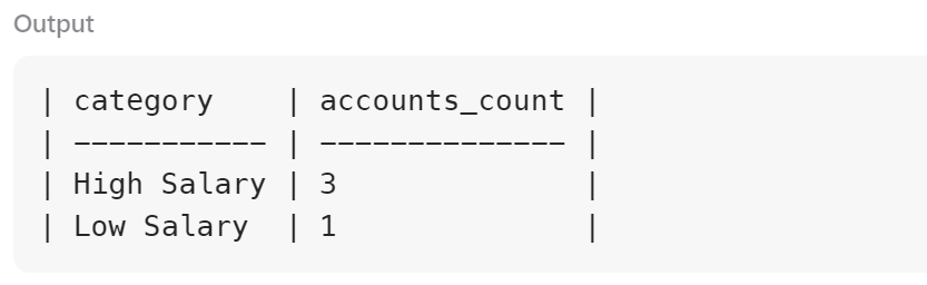 (select count(*) from accounts where income < 20000) as accounts_count)