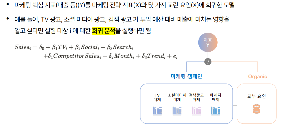 X = 매체 별 광고 집행 비용, 외부 환경 요인(ex- seasonality)