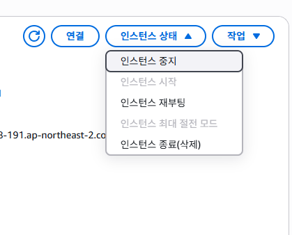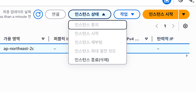 우측 상단 인스턴스 상태로 여러가지 상태 확인 가능