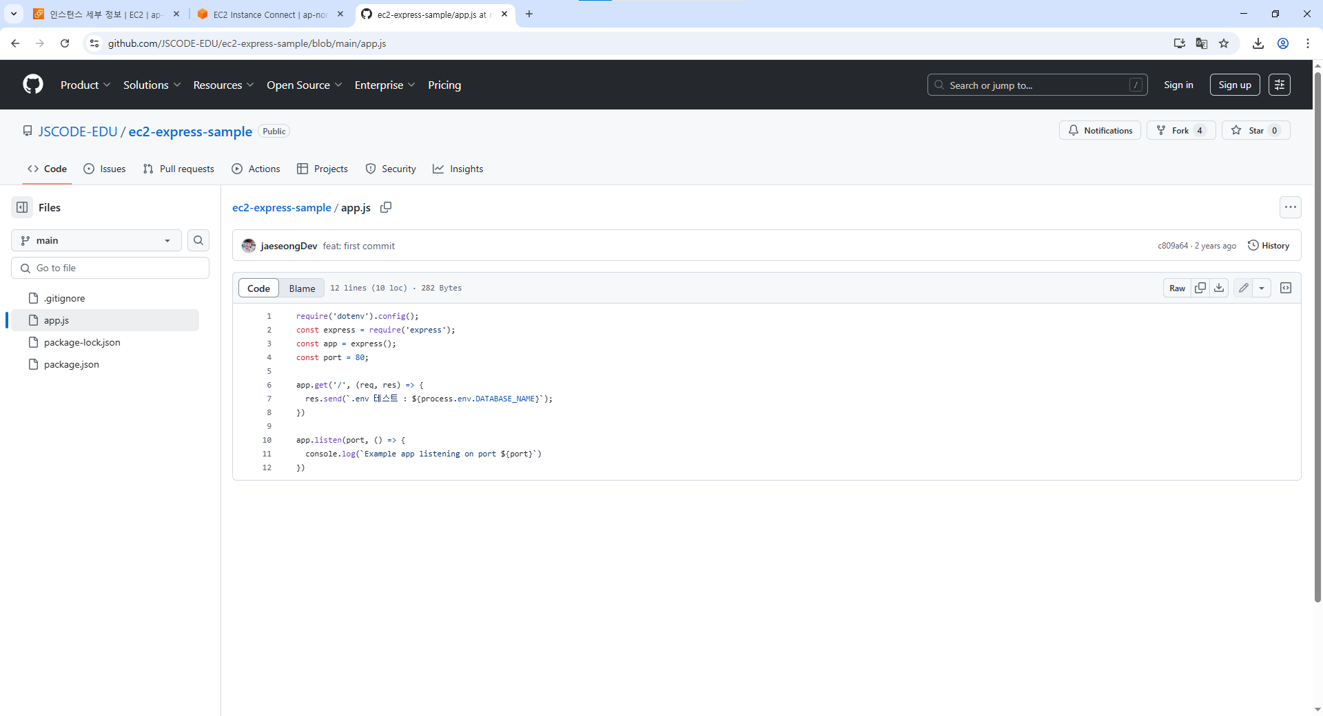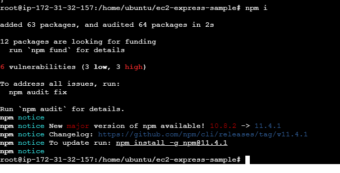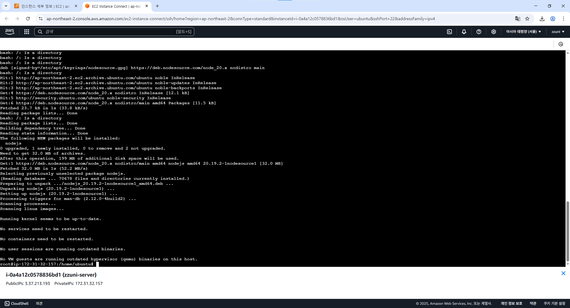 sudo su 로 관리자권한 주고 간단한 node js 설치를 통해 서버에 올려보기