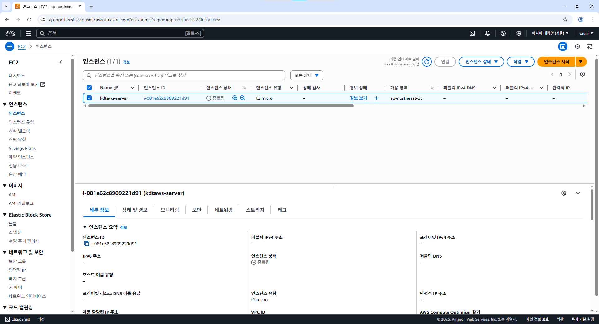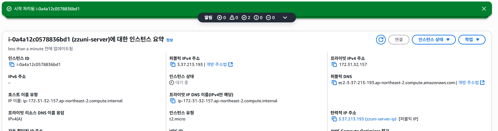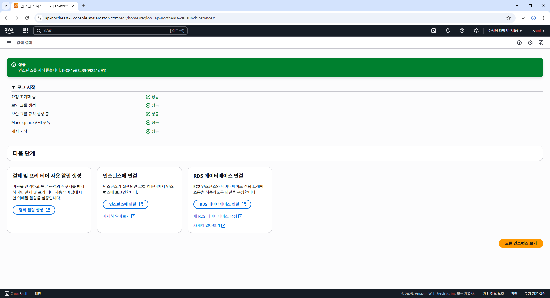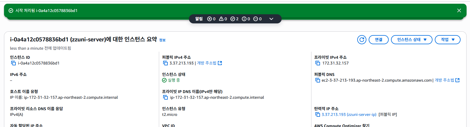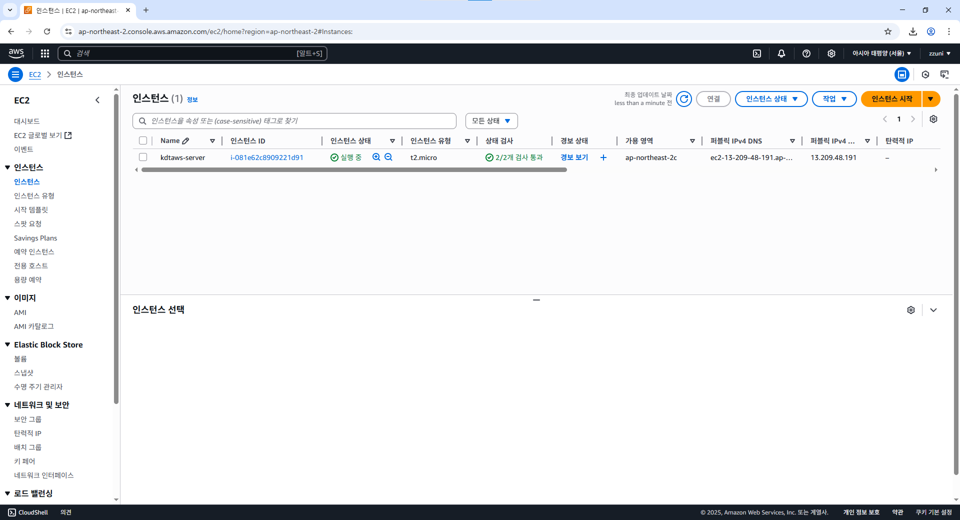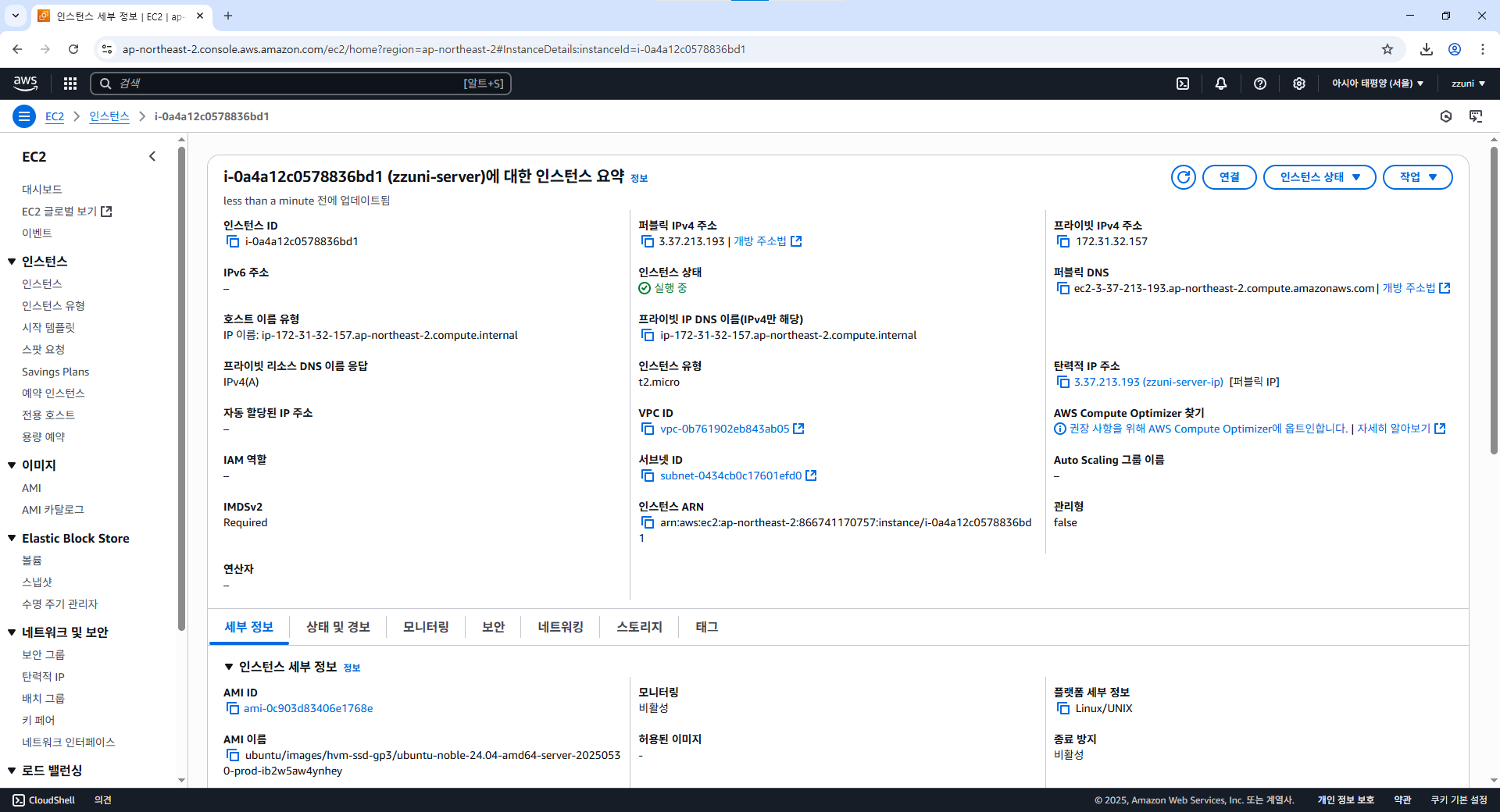 인스턴스 클릭해서 잘 올라왔는지 확인
