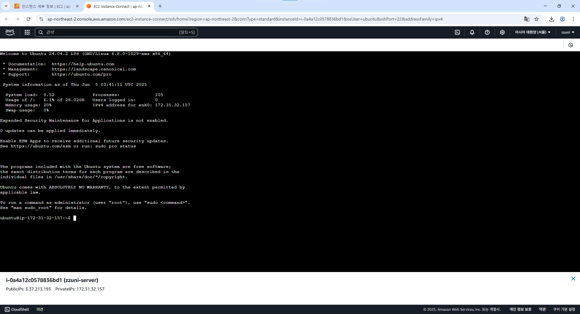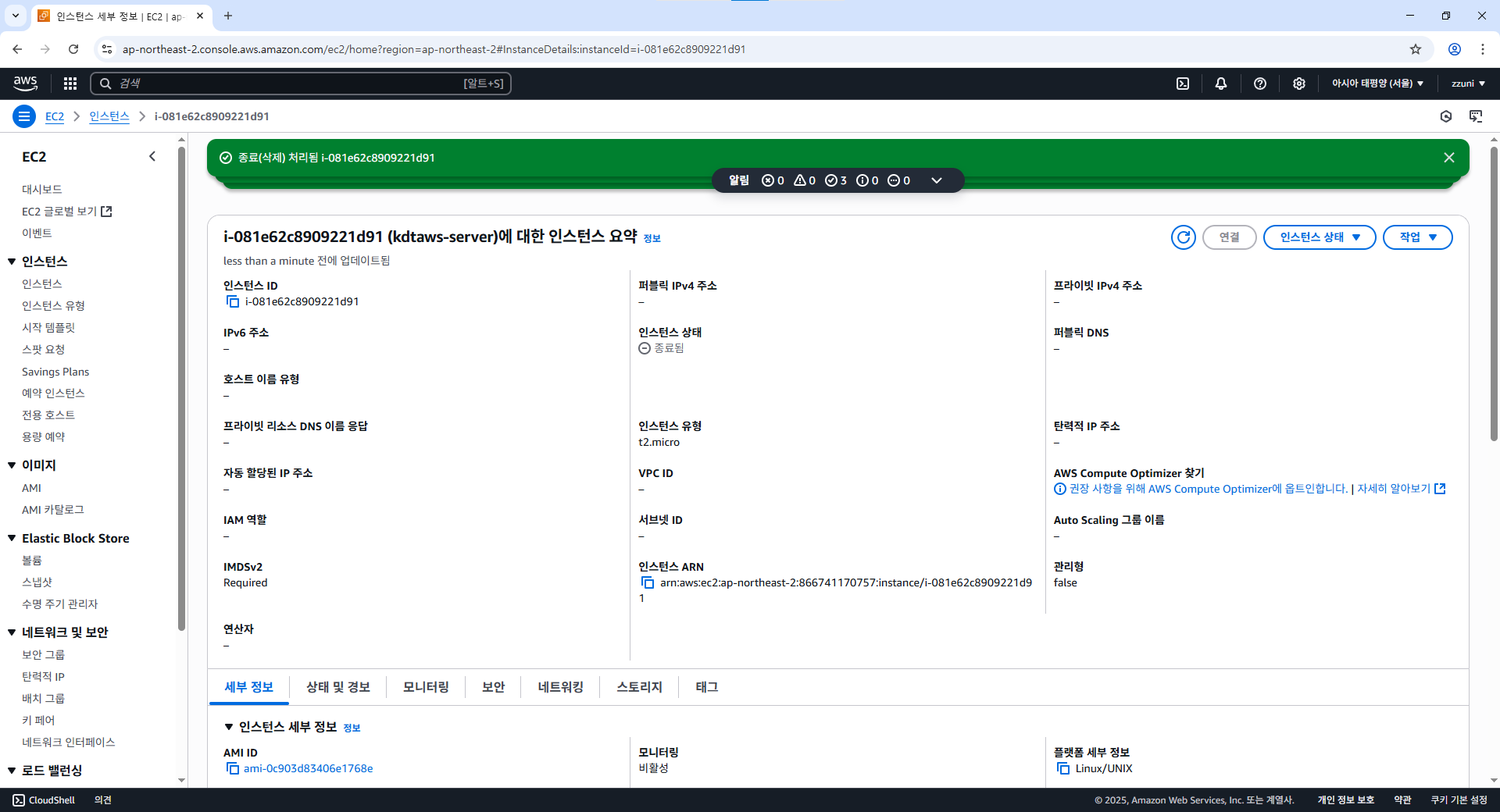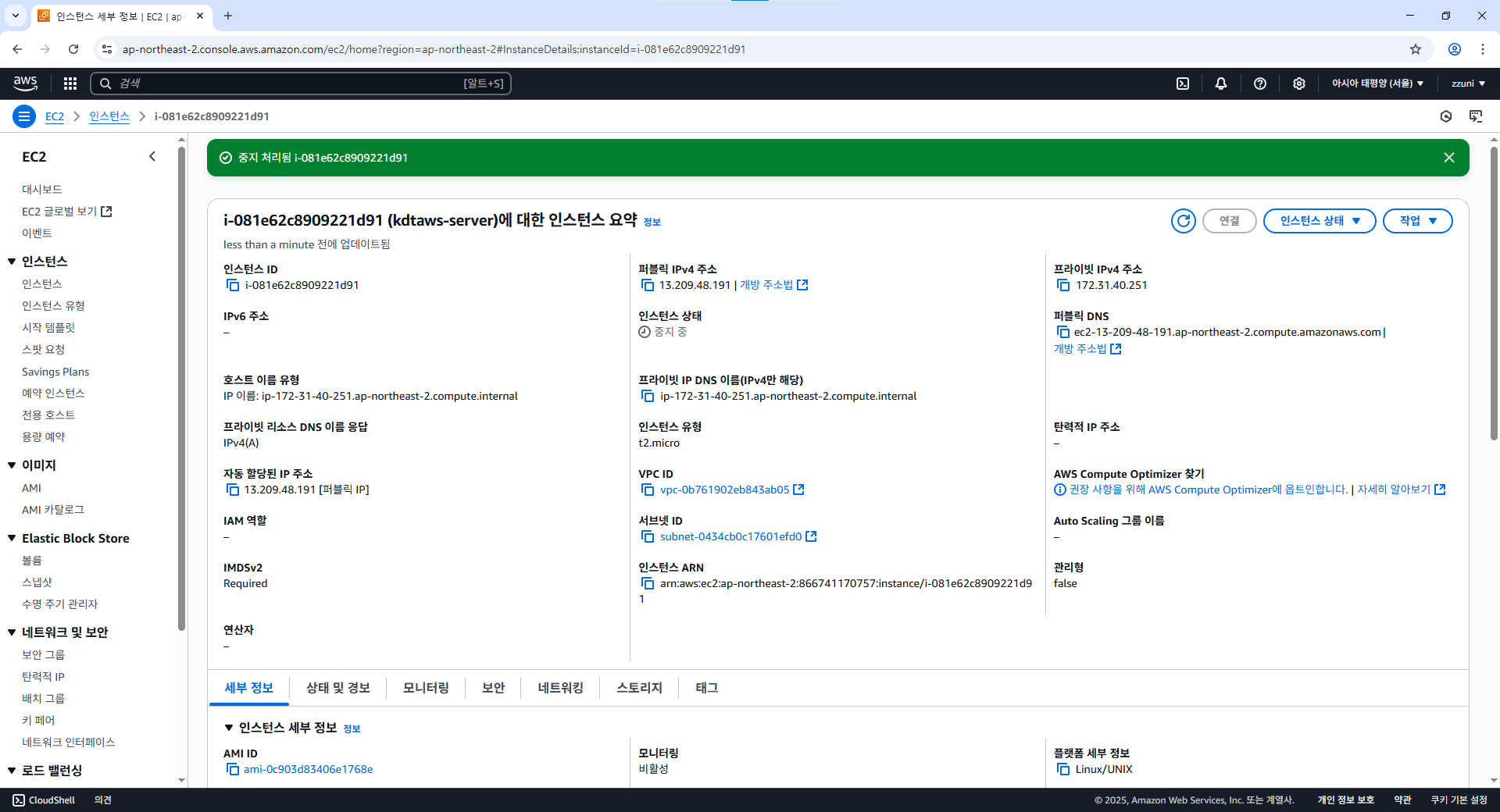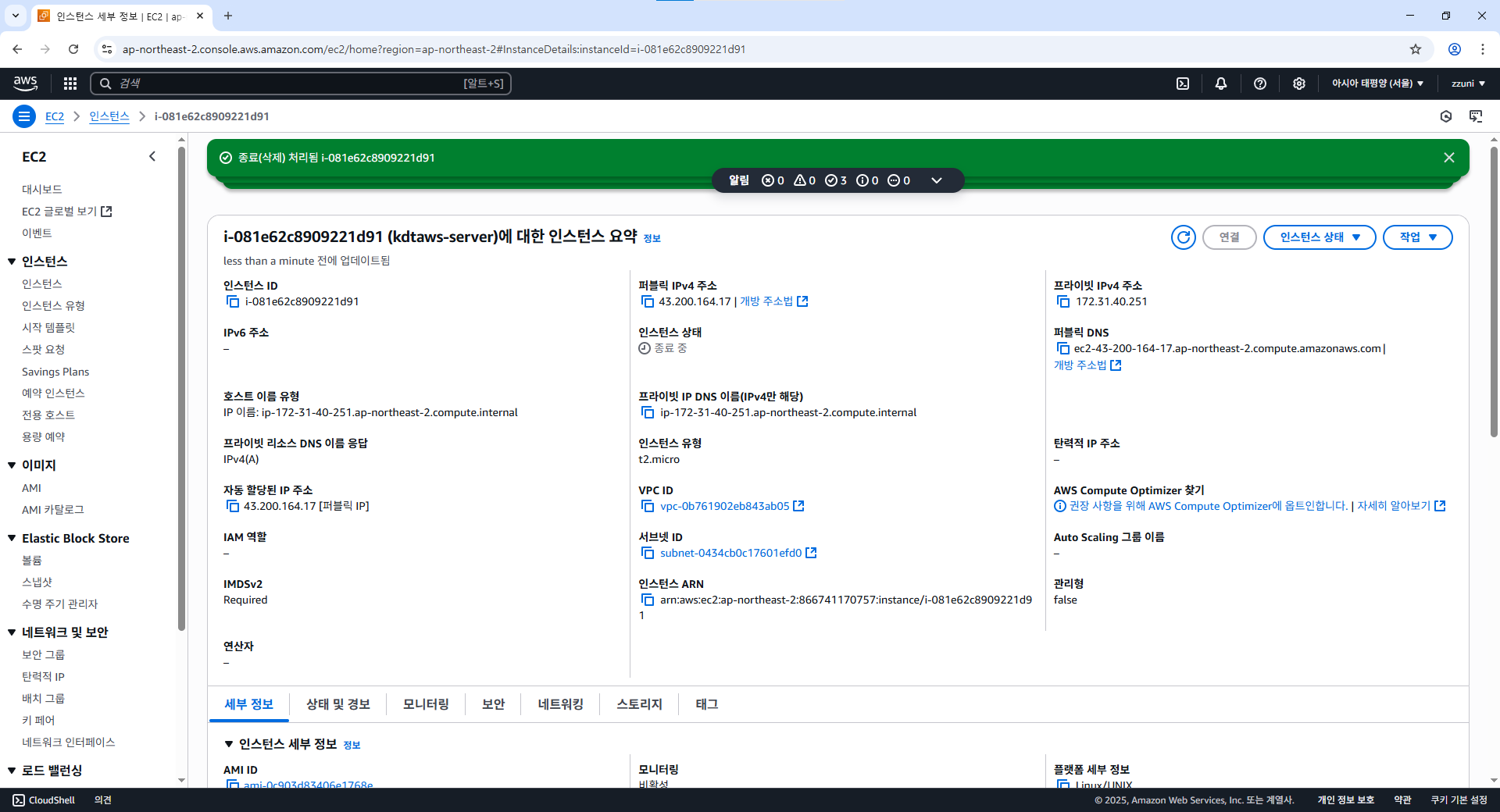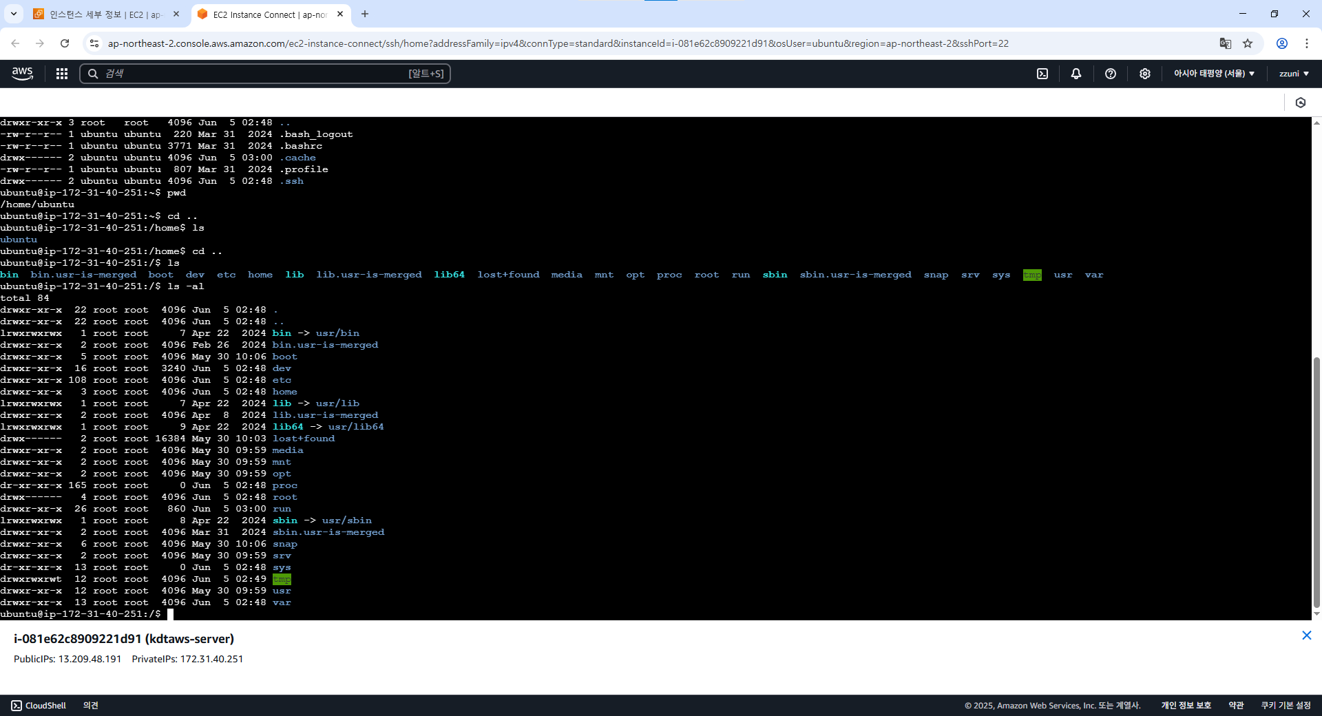 인스턴스 클릭해서 잘 올라왔는지 확인