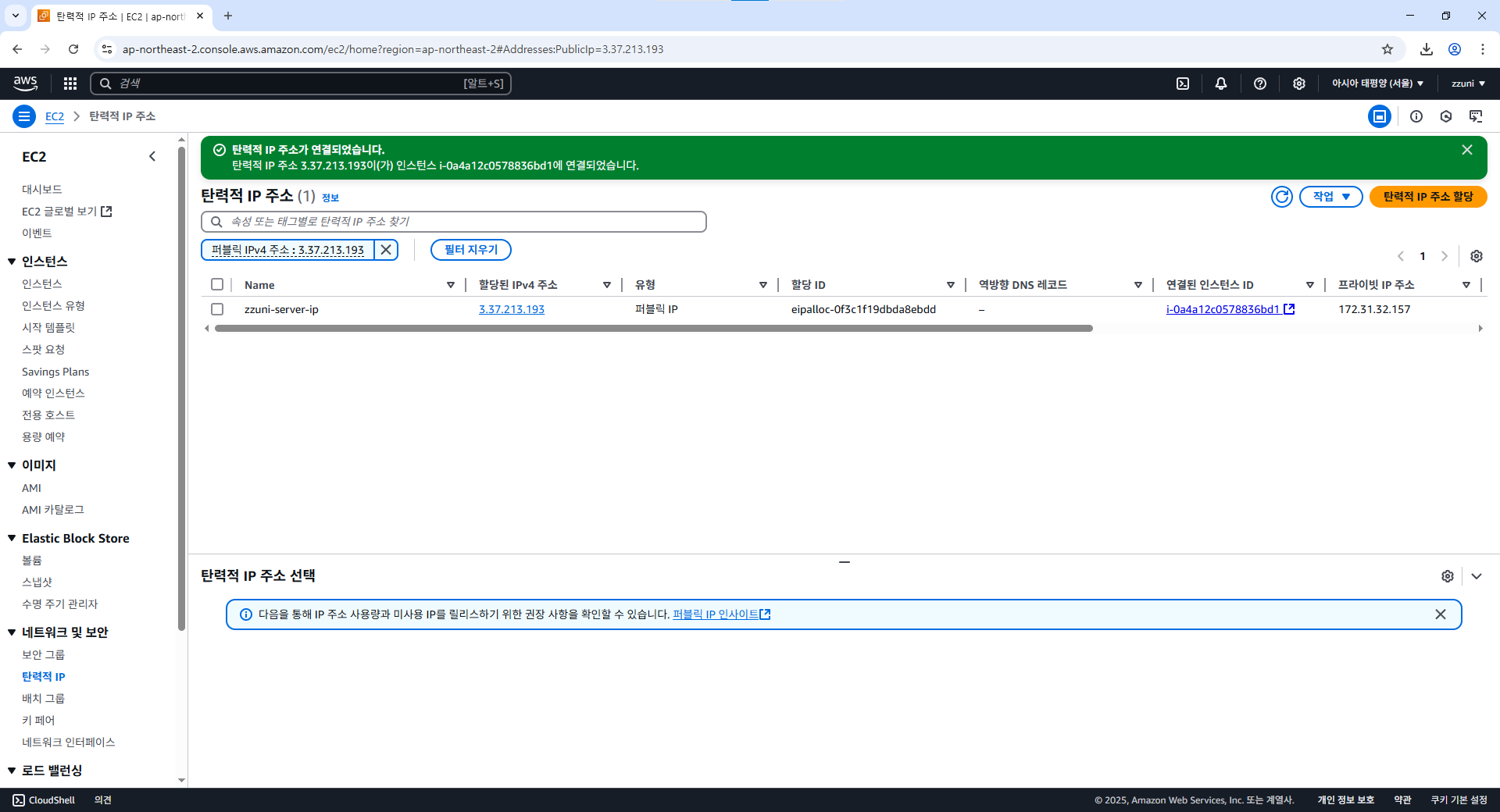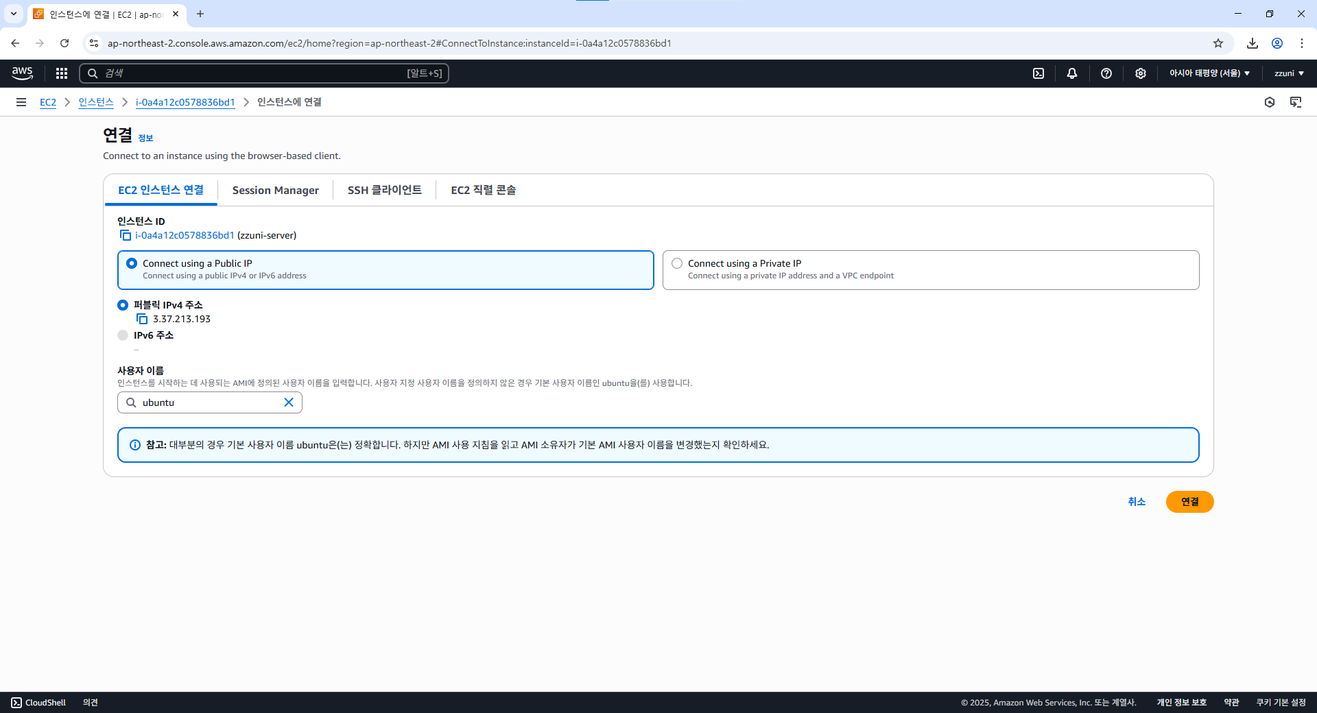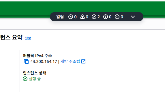 인스턴스로 가서 퍼블릭 IP 주소 확인