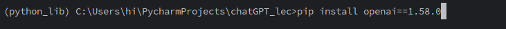파이참 -> 터미널 openai 설치