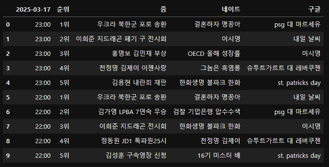 - 여러 키워드 분석 사이트를 돌아다니다보니, 오늘의 검색어 이 사이트가 인기 검색어 키워드를 추출하는데 괜찮아 보였음.