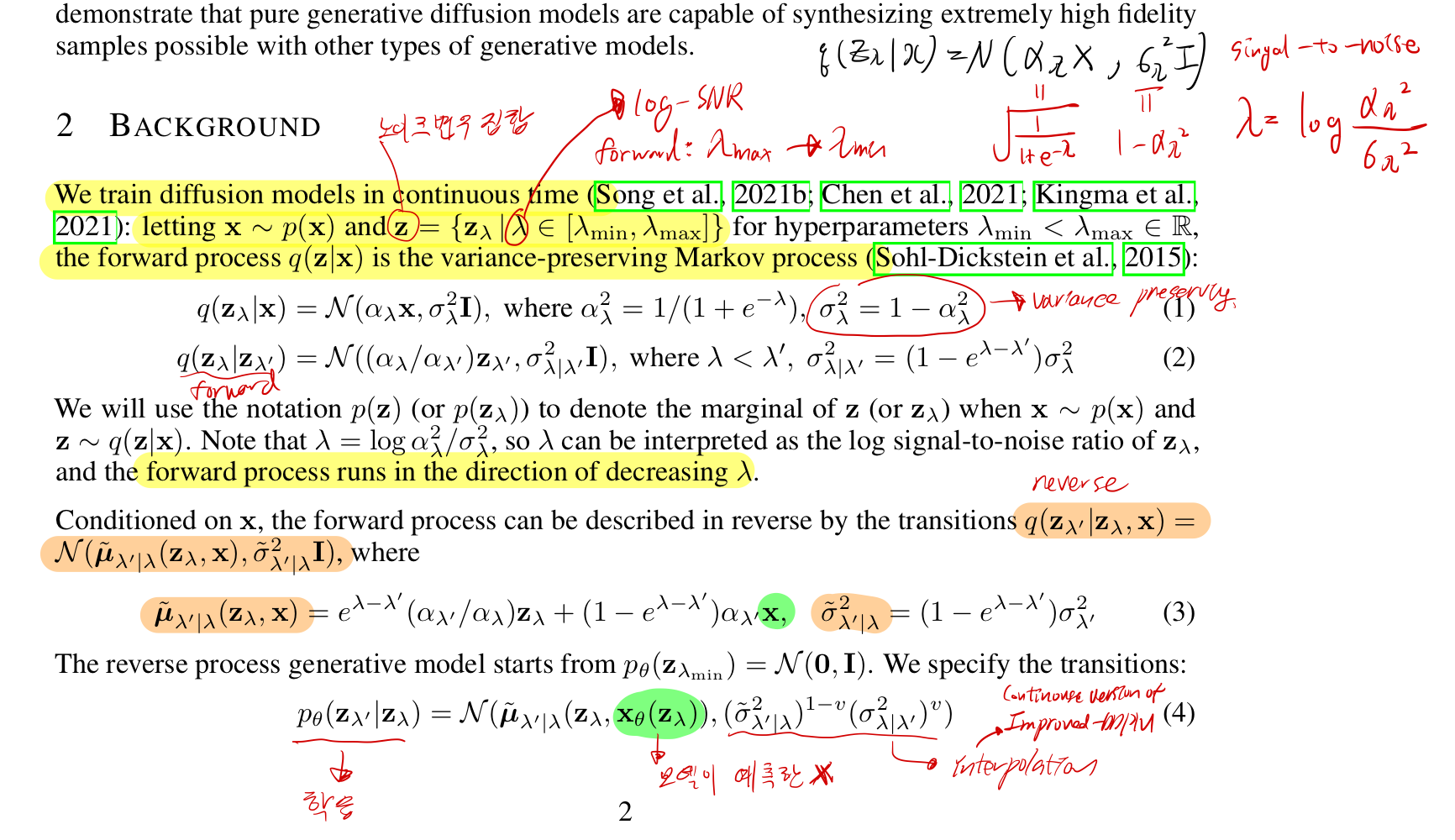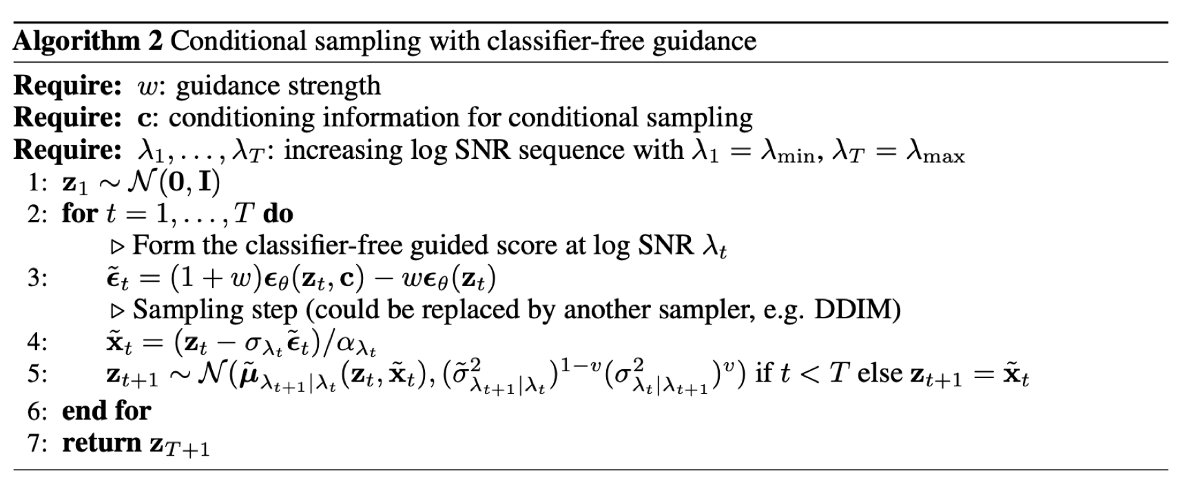 2. Background)낮은 온도 샘플링(low temperature sampling)이나 절단(truncation)과 유사한 개념조건부 확산 모델과 비조건부 확산 모델을 동시에 학습하며, (reverse 과정에서 노이즈를 추정하는 딥러닝 네트워크를 말함)null token 을 input 에 할당합니다.라벨이 input에 있는 딥러닝 모델과 라벨이 input에 없는 딥러닝 모델의 예측 사이를 interpolation하는 -> 분류기 없는 가이드를 활용분류기 기울기를 혼합 하기 때문이고, 실제로는 생성된 데이터는 현실성이 떨어질 수도 있다는 우려를 논문에서 제기합니다.이 질문들을 해결하기 위해 우리는 분류기-비의존적 가이던스라는 가이던스 방법을 제안합니다. 이 방법은 분류기를 완전히 배제합니다.