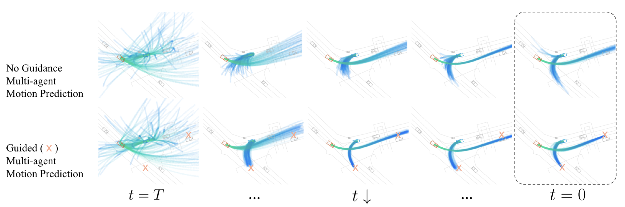 unit gaussian에서 random하게 추출한 multi-agent 경로 궤적