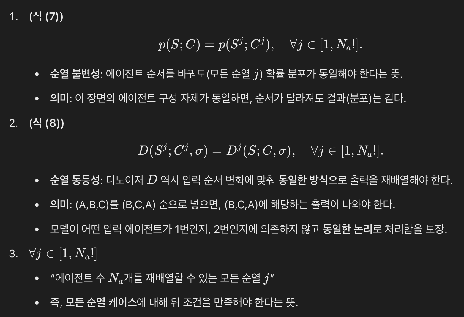 순열 불변 모델이란, “에이전트 배열 순서를 바꿔 입력해도 결과(에이전트별 예측)는 동일한(순서만 바뀌는) 형태”를 의미합니다. 즉, 어떤 에이전트가 먼저 오든 나중에 오든 모델은 동일한 관계와 분포를 학습합니다.