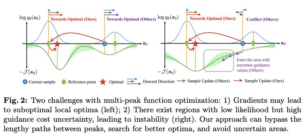 - 가이던스 샘플링 기법들([15,16,28,52] 그리고 본문의 ECM 포함)은 대체로 다음 두 가지 문제에 부딪힙니다 (그림 2 참고):