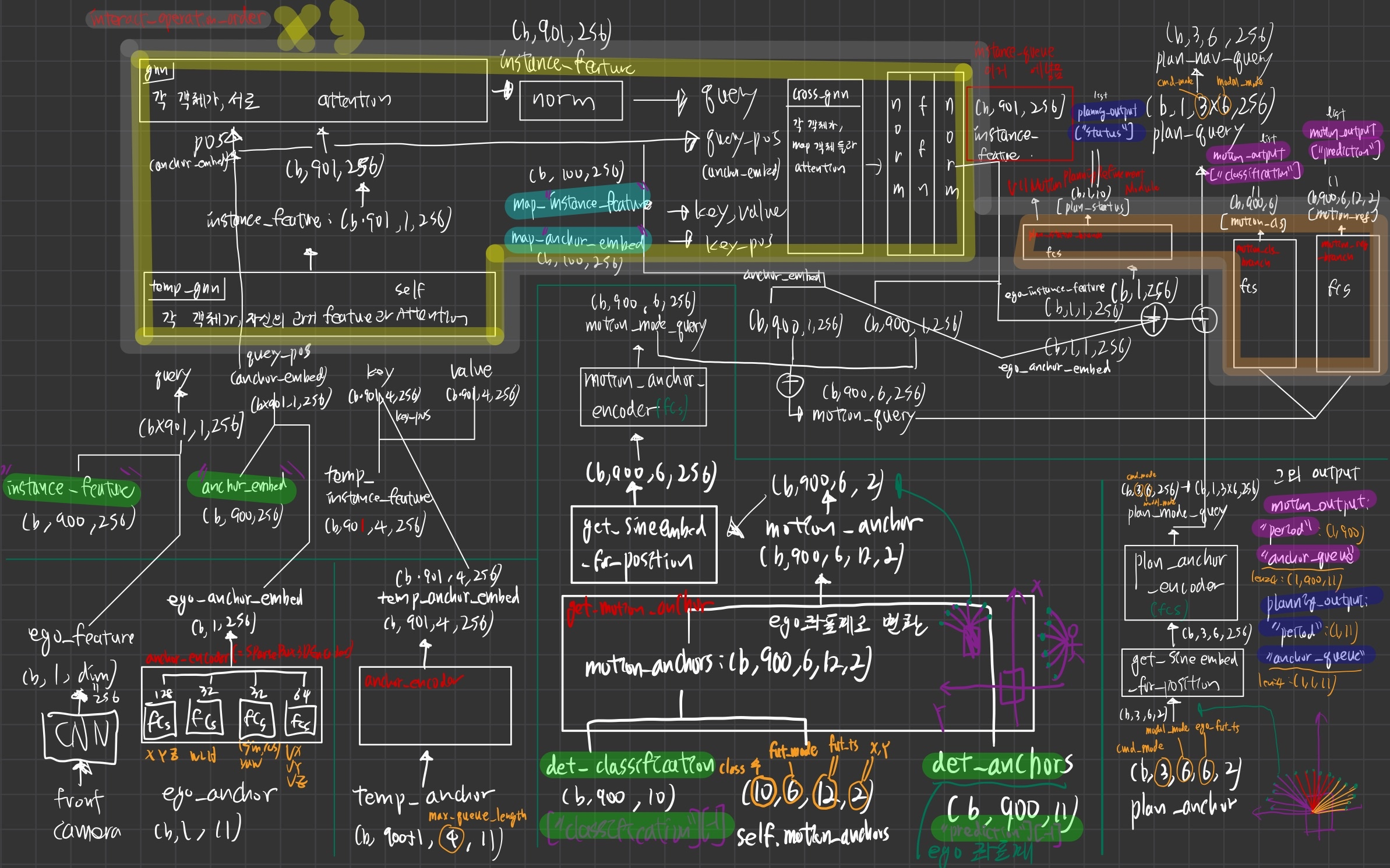 - 여기에 ego_instance_feature과 ego_anchor_embed (b, 1,1, 256) 을 더해서 만듦