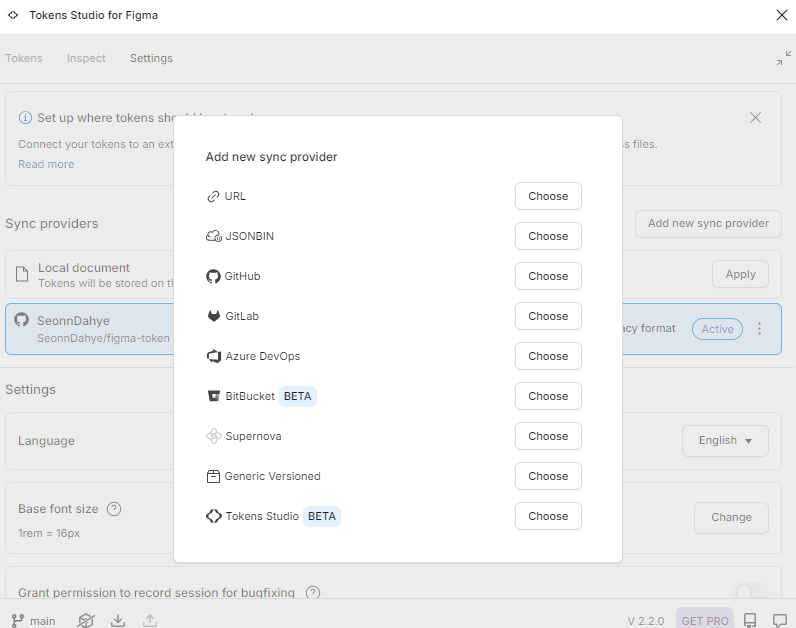 Setting > Sync providers > Add new sync provider에서 Github을 선택한다.