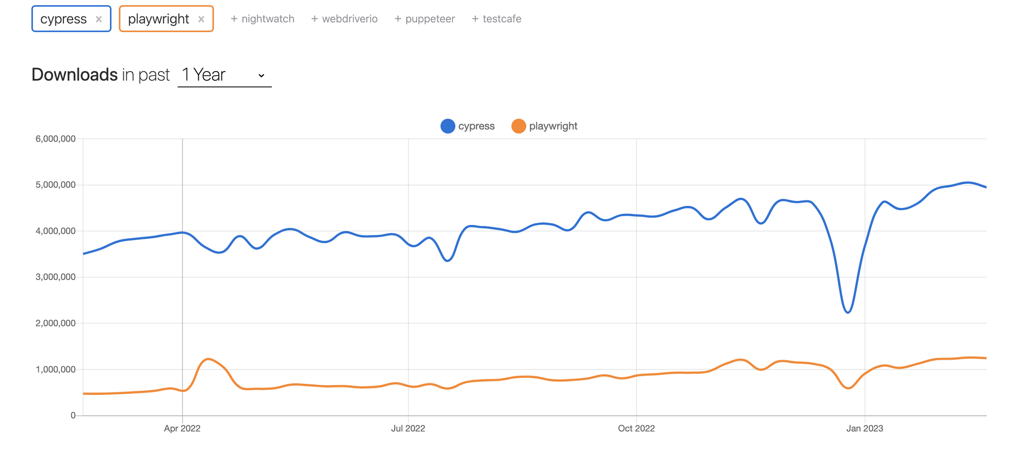 둘 다 JS 문법이므로 한 가지만 마스터하면 다른 툴도 손쉽게 사용할 수 있을 거라고 생각했고, 프로젝트에서 특정 버튼을 클릭하면 새 탭을 보여줘야 하는 경우가 있기 때문에 Cypress는 쓰기 어려울 거라고 판단했다.