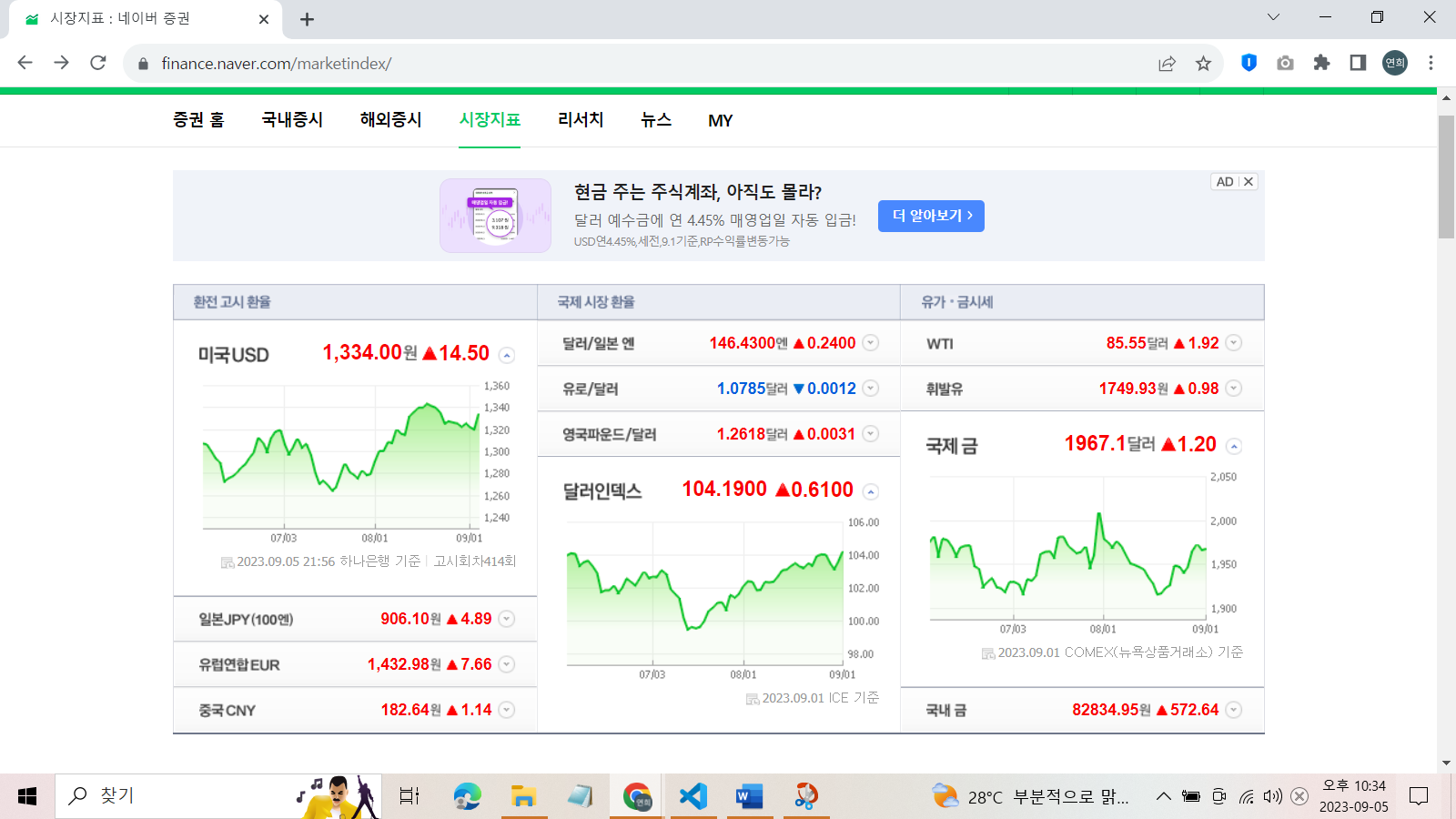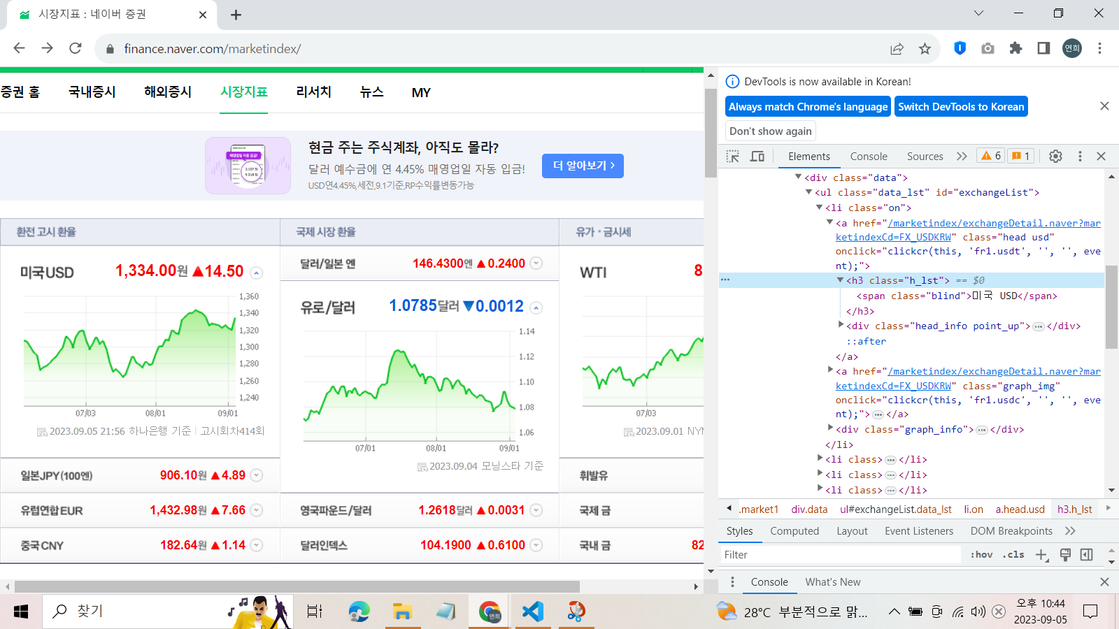 지금부터 파싱할 웹페이지는 '네이버 증권'으로 그 중에서도 '시장지표' 페이지를 분석하려고 한다.
