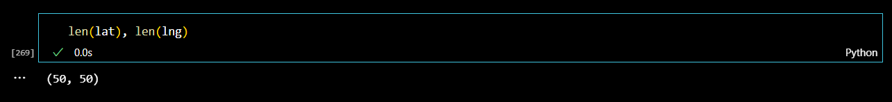 50개 가게들의 위도와 경도 정보를 for문을 이용해서 리스트에 저장한다.