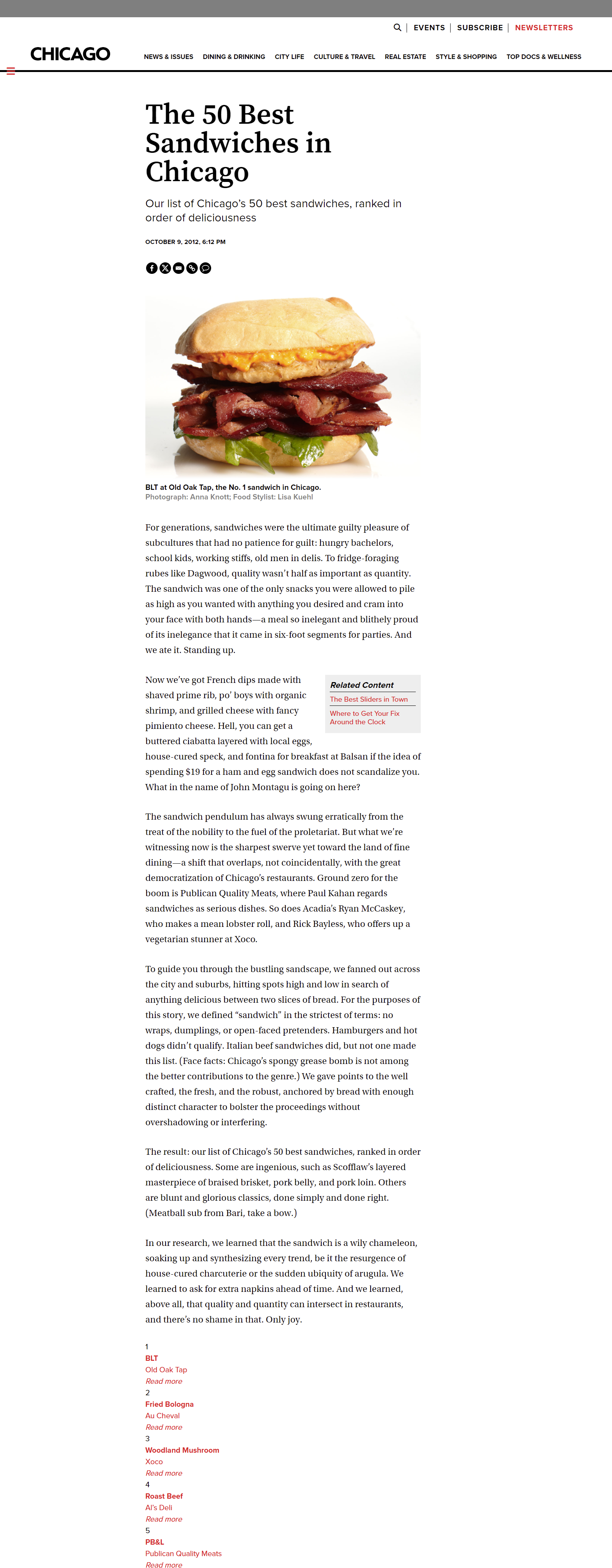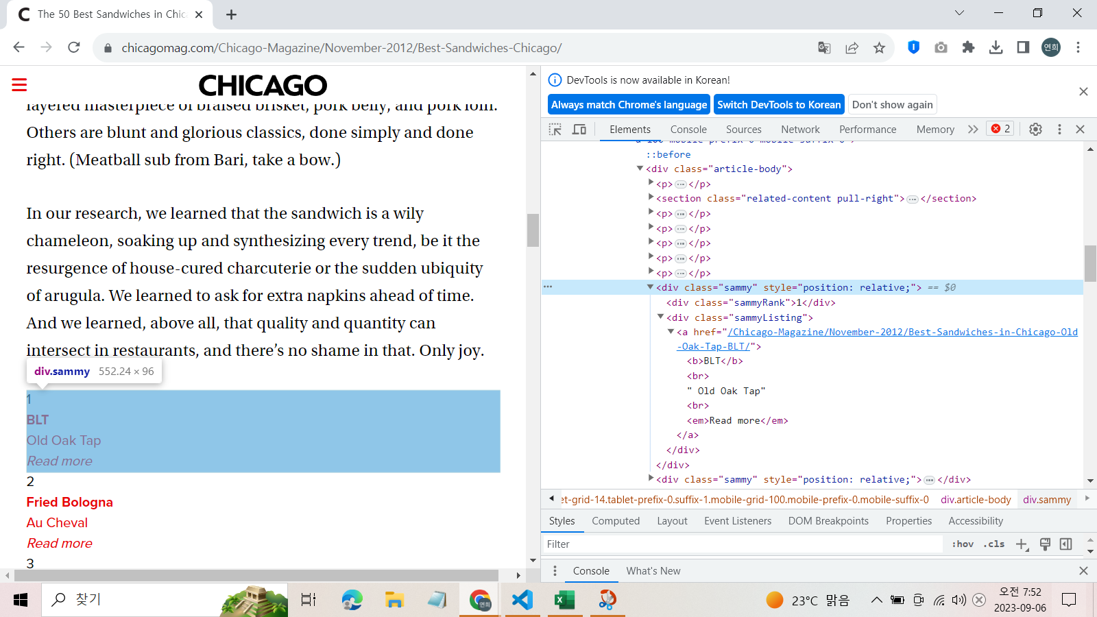 이제 <Chicago Magazine> 홈페이지에서 샌드위치 맛집 선정 포스팅을 분석해보자.