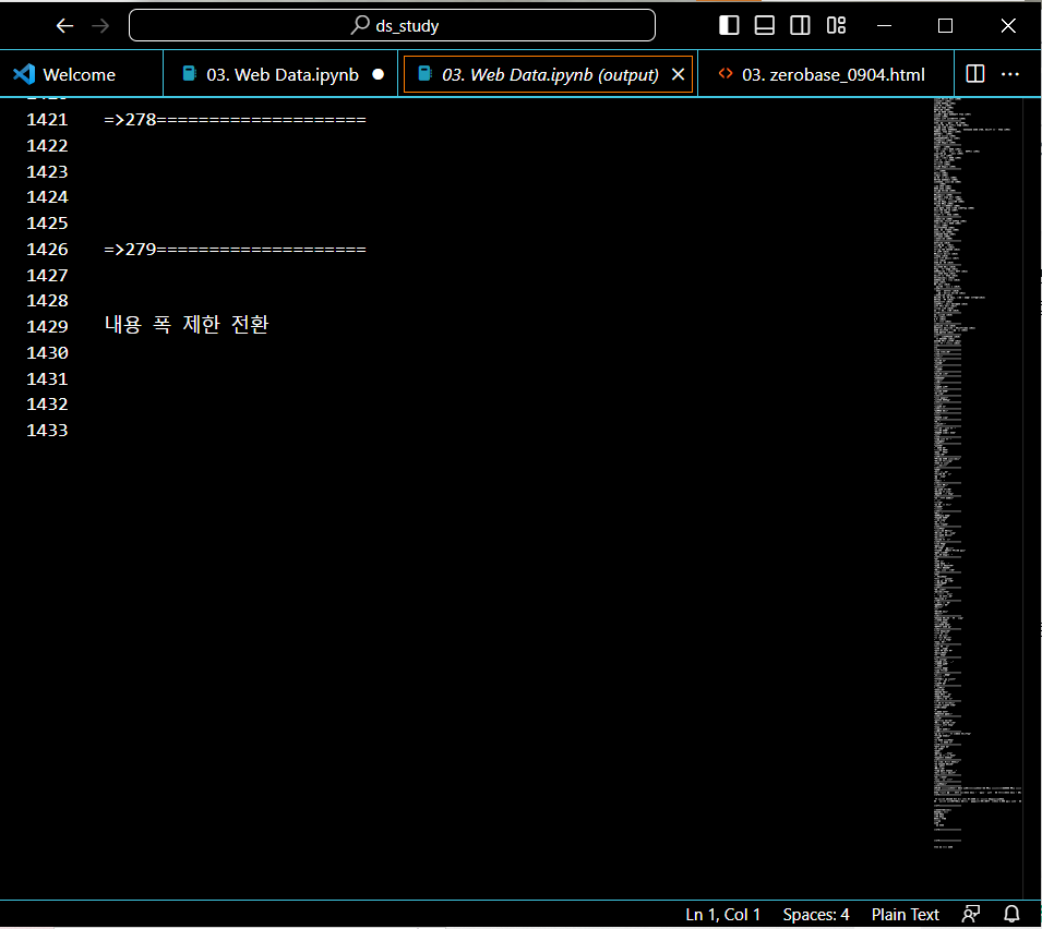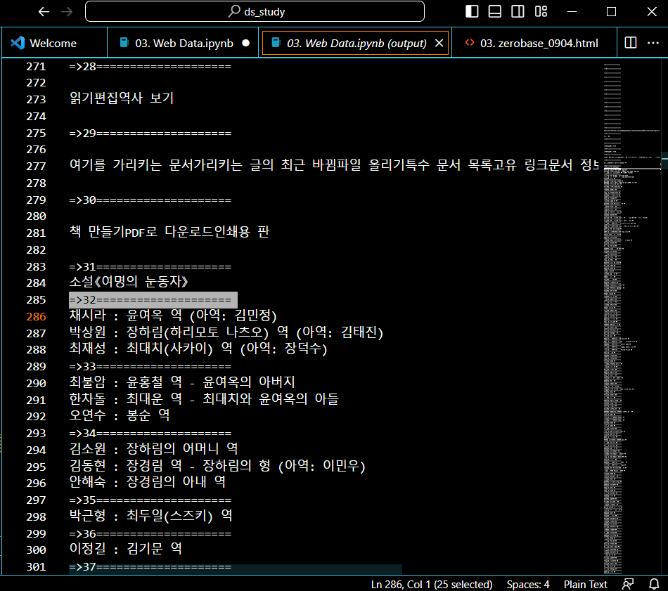 이제부터 각종 html 태그들을 통해서 데이터를 추출해보자. 먼저 파일을 VScode에 불러와 출력하면, html코드를 출력할 수 있다.