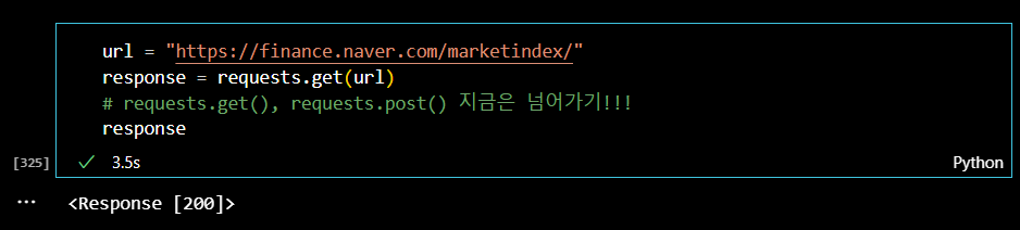 다음에는 '시장지표' 페이지의 url주소를 변수에 지정해서 html코드를 불러온다.