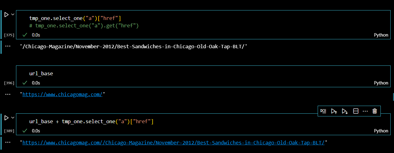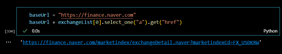 다음으로 링크를 찾아보자. 그런데 보이는 봐야 같이 서브 url주소만 저장되어있기 때문에 맨 처음에 저장했던 메인 url주소를 불러와 연사자로 합쳐주었다.
