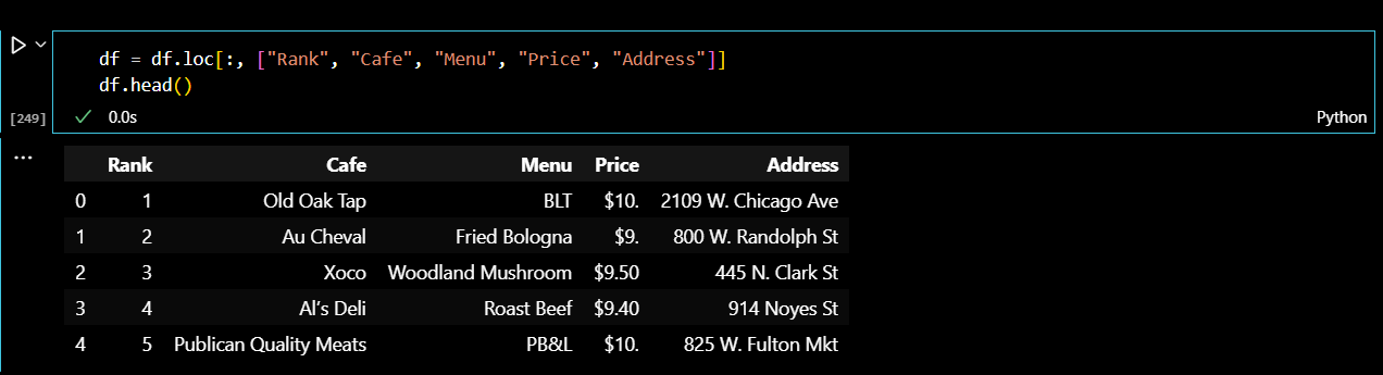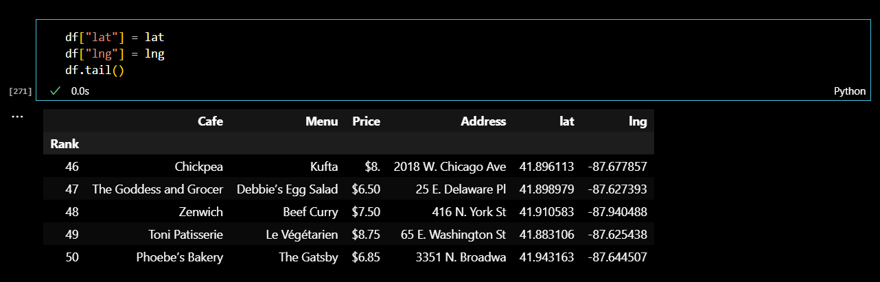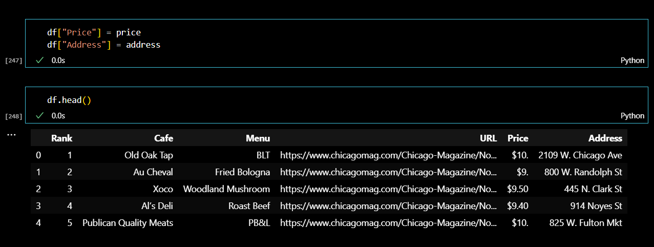 이제 기존의 데이터프레임에 새로운 칼럼을 만들어서 가격과 주소정보를 추가해준다.