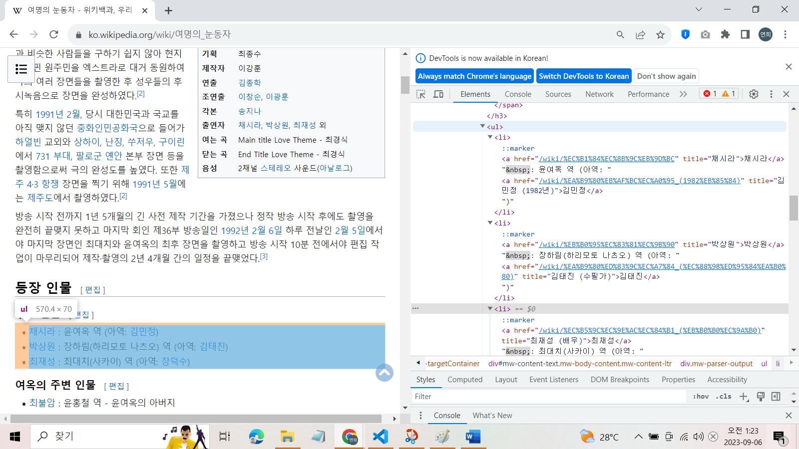이제 주요인물 정보를 가져와보자. 데이터는 "ul"태그 안에 있다는 것을 개발자 도구를 통해 확인했다.