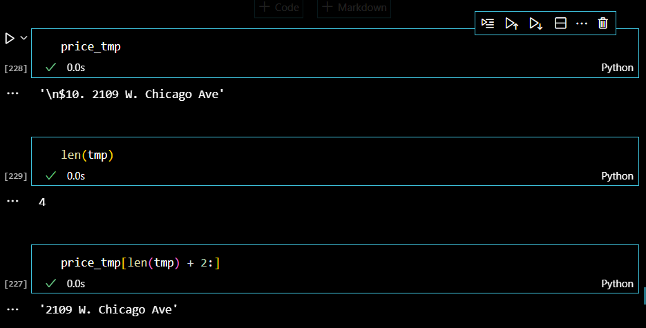 주소정보는 price_tmp변수를 통해서 문자열의 길이를 활용하여 원하는 정보를 출력한다.