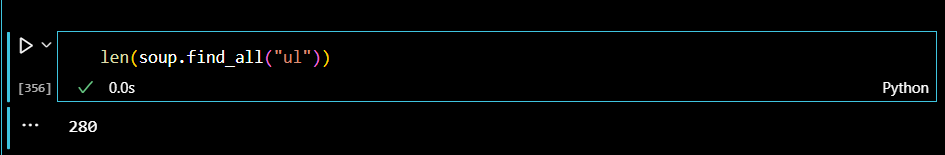 그런데 "ul" 태그만 280개나 있고, 그 안에 있는 데이터 양도 방대하다.