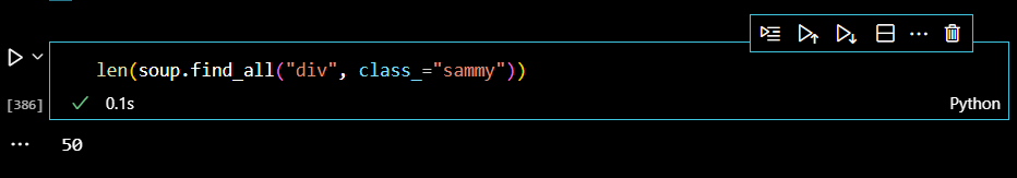 메서드로 태그 정보를 찾았을 때, 리스트 길이가 50개가 맞는지 확인해보자.