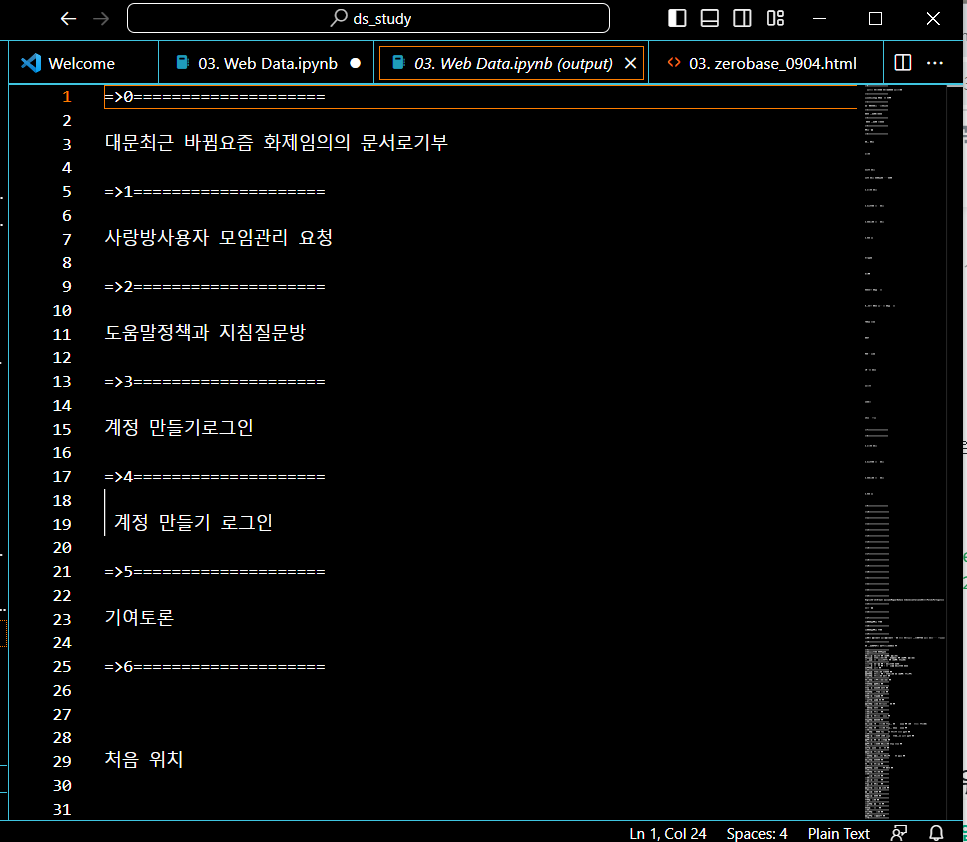 그래도 남아 있는 html문법은 strip()매서드를 이용해서 제거해보자.
