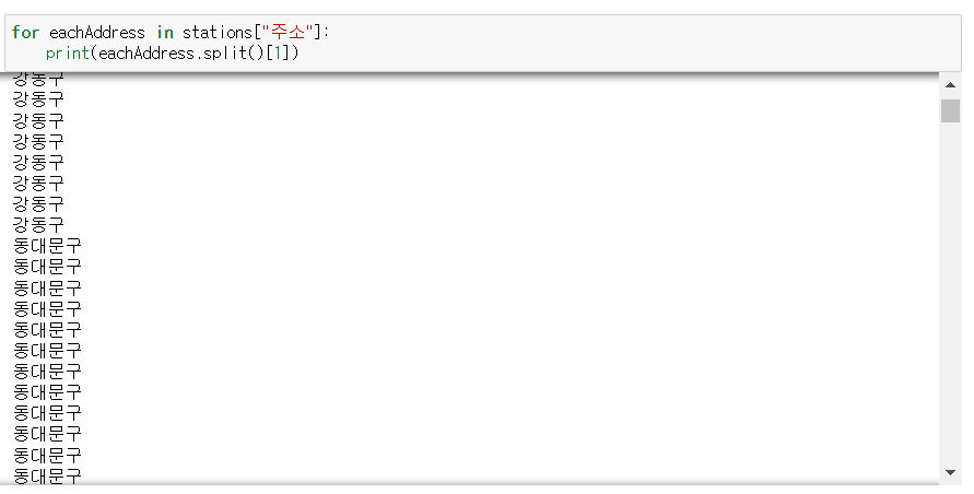 우리는 자치구의 정보도 알아야 하므로 "주소" 컬럼에서 자치구 정보만 따로 빼내어 "구" 컬럼을 만들어 주었다.