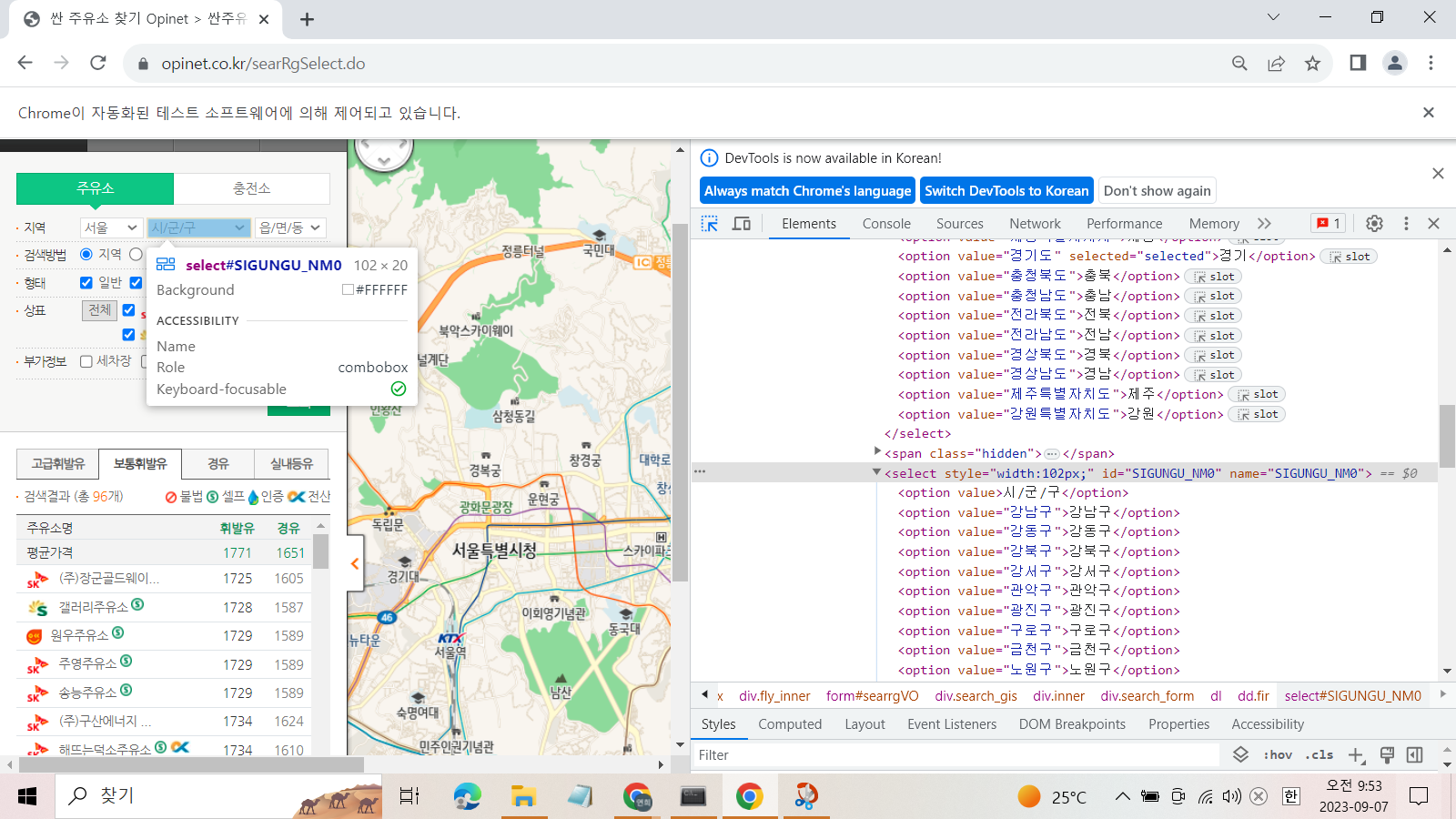먼저 '시/도' 리스트를 가져와서 '서울특별시'를 선택해보자.