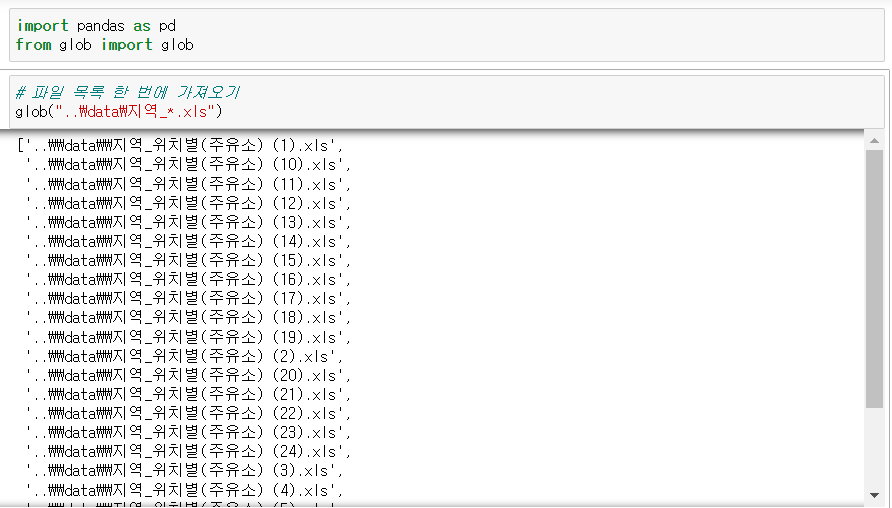 이렇게 25개의 자치구별 주유소 단가 엑셀 파일이 저장되었다.