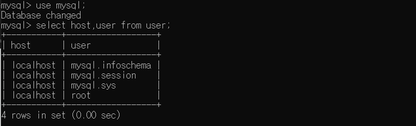 먼저 현재 PC에서만 접속 가능한 localhost 사용자를 비밀번호와 함께 만든다.