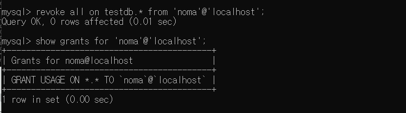 REVOKE ALL ON testdb.* FROM 'noma'@'localhost';