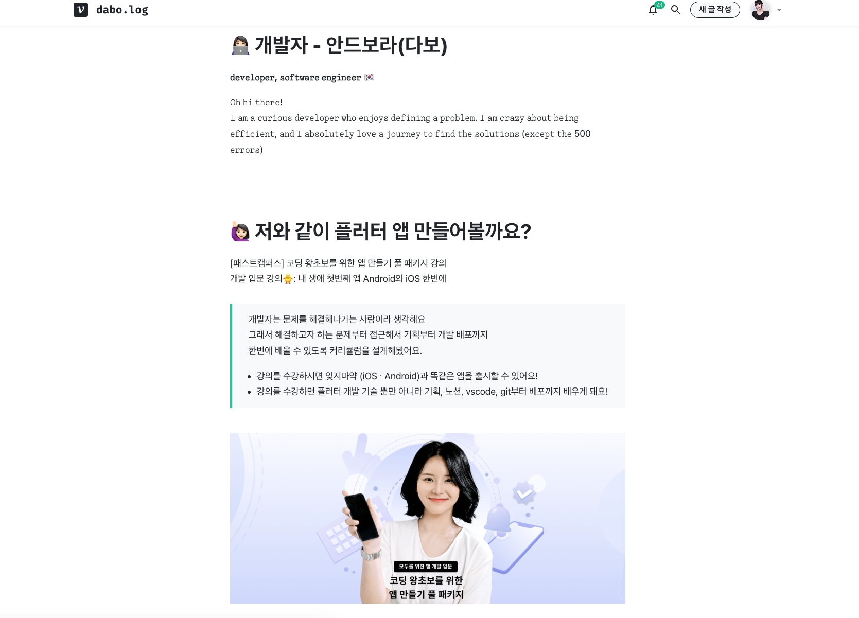 Flutter 개발을 주로 블로그 활동을 했었고,