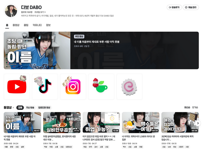 스트리머 다보? 방송인 다보? 가 새로 왔으니