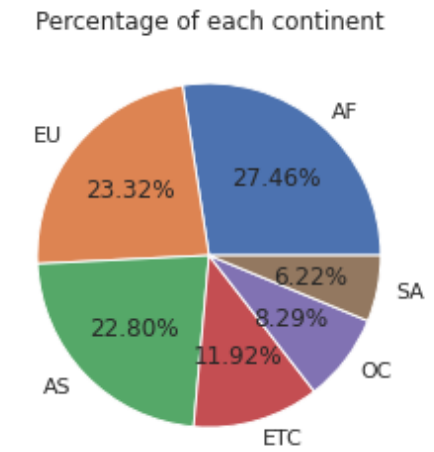 여기서는 continent에 대해서 파이차트를 그려보고자 합니다.