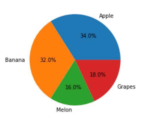 이제 파이 차트를 그리기 위해 필요한 두 가지를 얻었습니다. 파이 차트를 그리는 방법은 Matplotlib의 pyplot을 plot로 임포트하였다면, plt.pie()를 사용합니다.