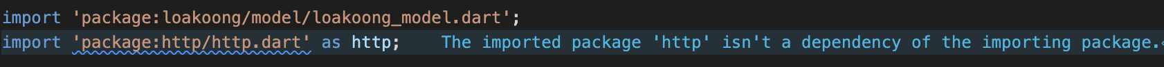 pubspec.yaml 파일의 "dependencies:" 에 "http: ^0.13.5"를 추가해야하한다