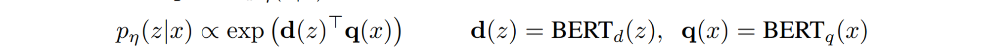 는 로 생성한 문서의 dense representation이고 는 다른 매개변수를 가진 transformer에 의해 생성된 query representation이다.