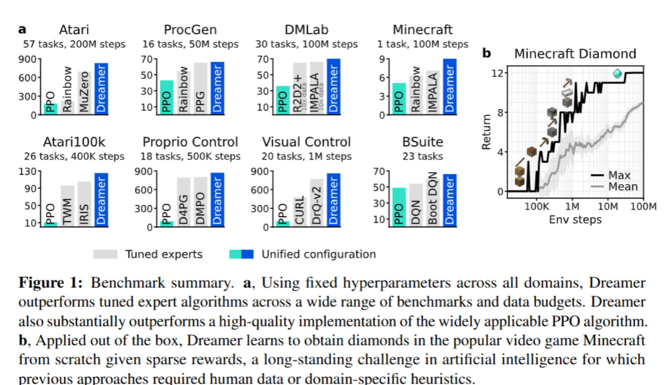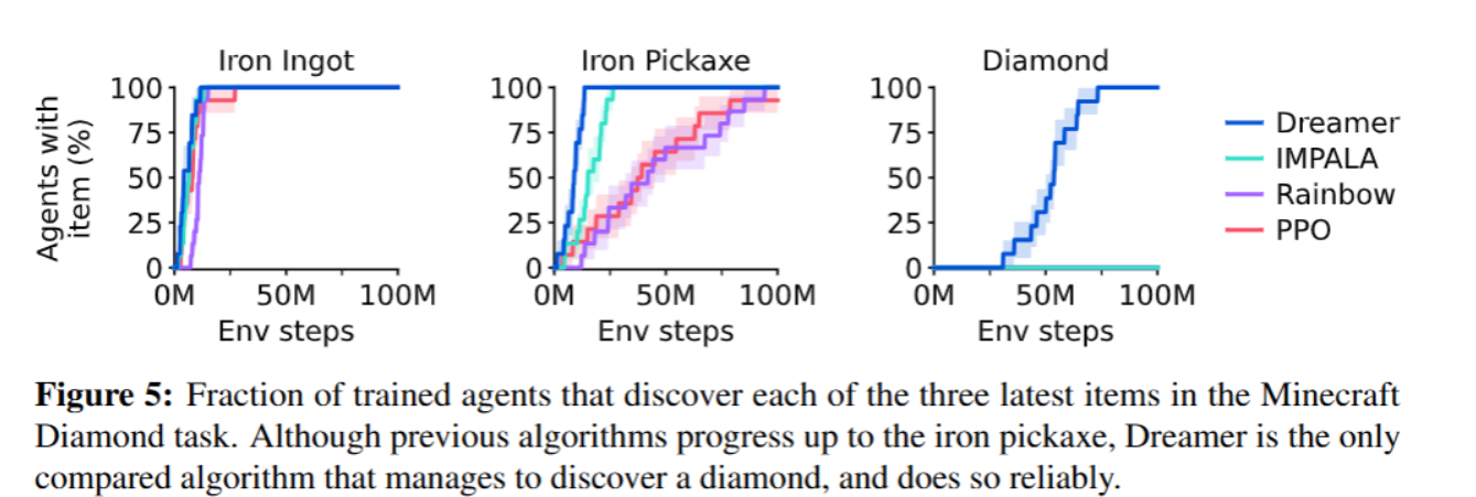 Dreamer๋ ์ธ๊ฐ ๋ฐ์ดํฐ๋ฅผ ์ฌ์ฉํ์ง ์๊ณ ๋ ๋ง์ธํฌ๋ํํธ์์ ์ฒ์๋ถํฐ ๋ค์ด์๋ชฌ๋๋ฅผ ์์งํ๋ ์ต์ด์ ์๊ณ ๋ฆฌ์ฆ์ด๋ค.