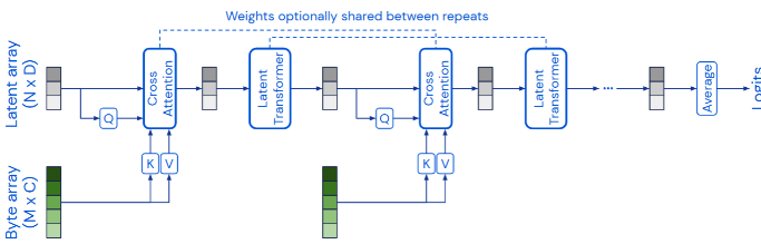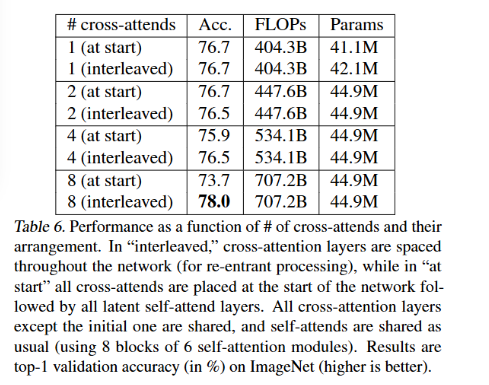 = Cross-Att -> 6 Latent Blocks -> Cross-Att -> 6 Latent Blocks ...ย 8๋ฒ ๋ฐ๋ณต)
