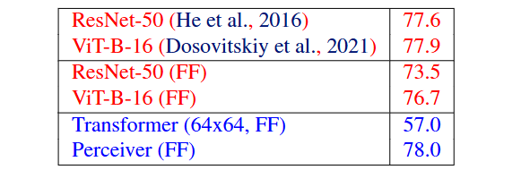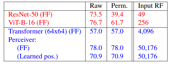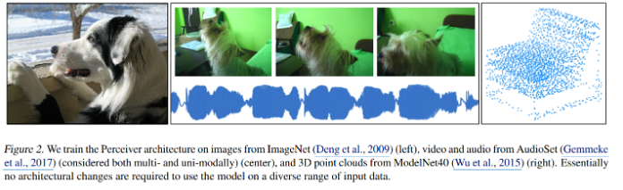 3. ๐ Perceiver๋ ์ด๋ฏธ์ง, ํฌ์ธํธ ํด๋ผ์ฐ๋, ์ค๋์ค, ๋น๋์ค ๋ฑ ๋ค์ํ modality์์ ํนํ๋ ๋ชจ๋ธ๋ค๊ณผ ๊ฒฝ์๋ ฅ ์๋ ์ฑ๋ฅ์ ๋ณด์ฌ์ค๋๋ค.