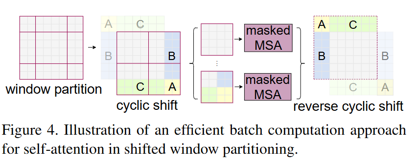 Attention 층이 하나 지나갈 때마다 윈도우를 일괄적으로 반 칸씩 이동하면 이전 층에서 나뉘어져 있는 윈도우 간 연결이 생기고 Attention 영역이 넓어진다.