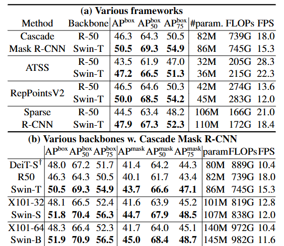 Swin Transformer achieves the state-of-the-art performance on COCO object detection and