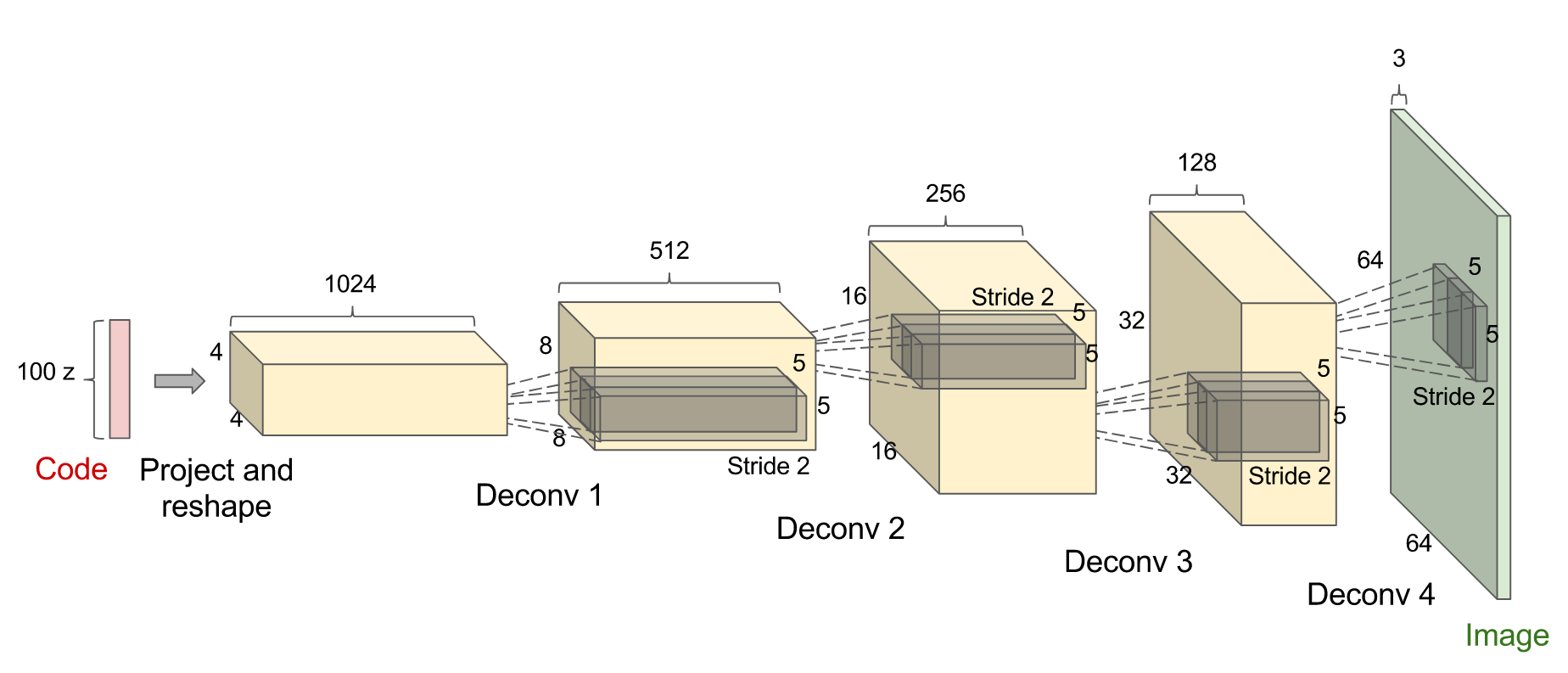 - 2016에 공개됨, GAN에 합성곱 연산을 적용