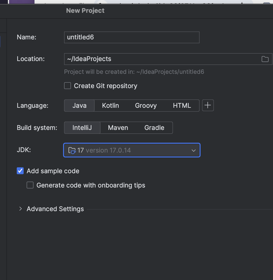 인텔리제이에서 New Project를 누르고, JDK 버전을 선택한다. 만약 없다면 Download JDK를 눌러 설치가 필요하다. 나는 이미 설치가 되어있어서 따로 설치하지는 않았다. 해당 도서에서는 JDK 17을 사용하였다.