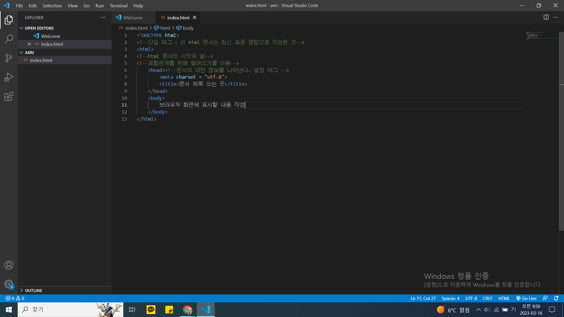 문자 인코딩(한글을 표시하기 위해 문자 세트 지정 - utf-8)/문서 키워드 등 요약 정보를 기입