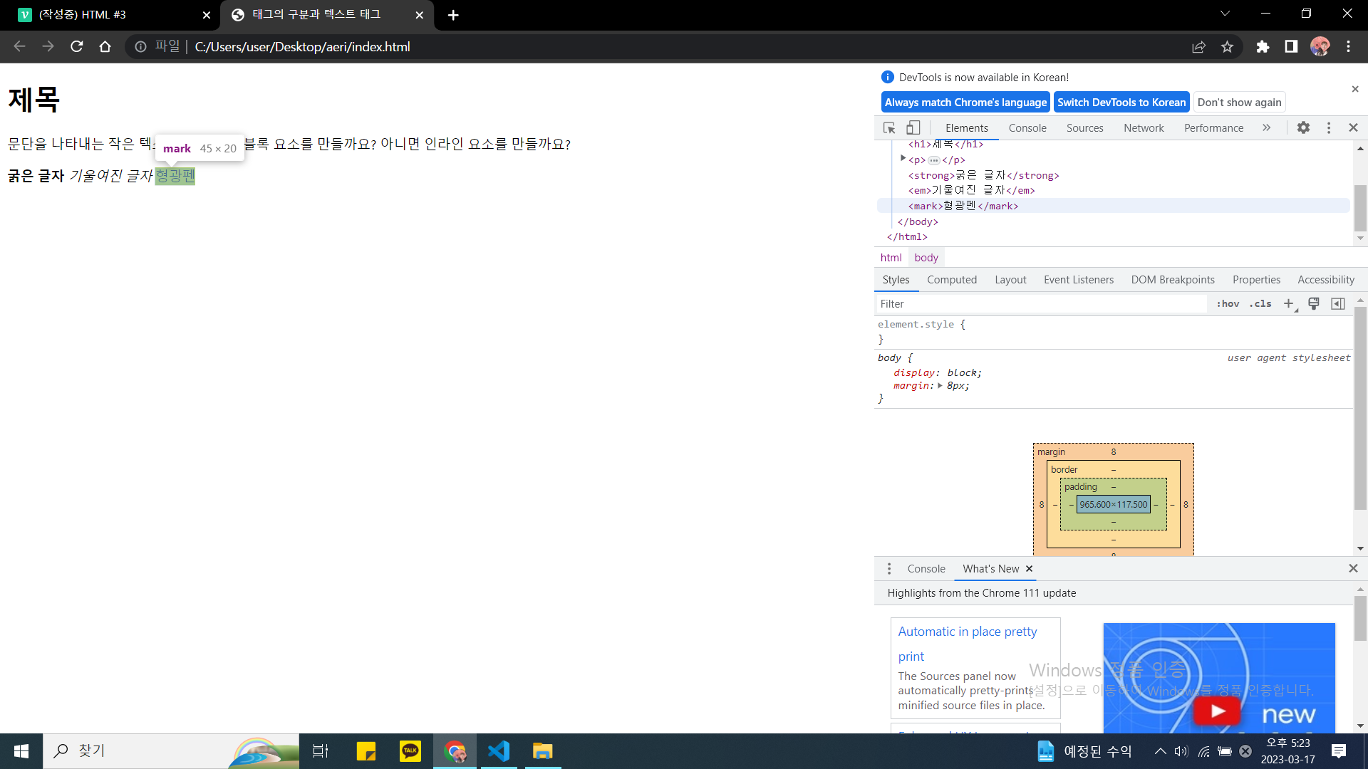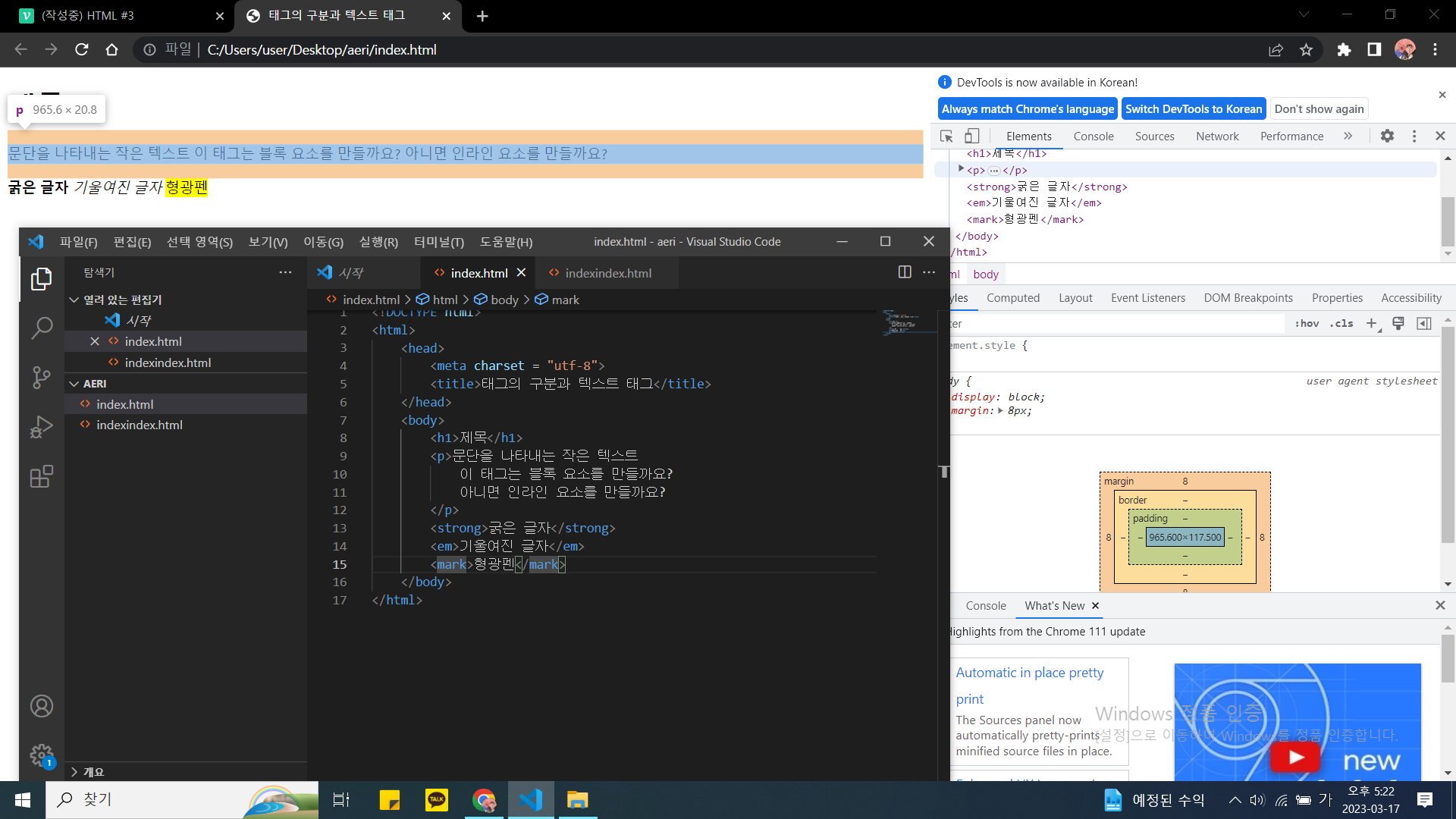 감싸는 콘텐츠 형광펜 표시
