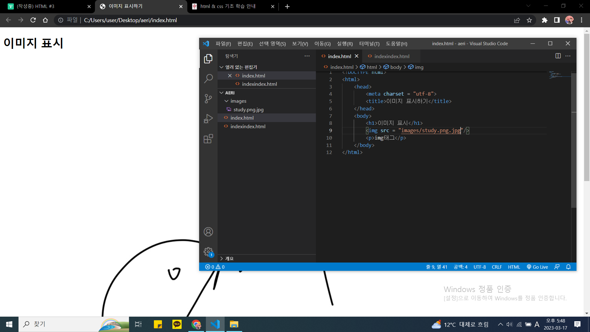 <img src = " 표시할 이미지 파일" alt = "이미지설명"/>